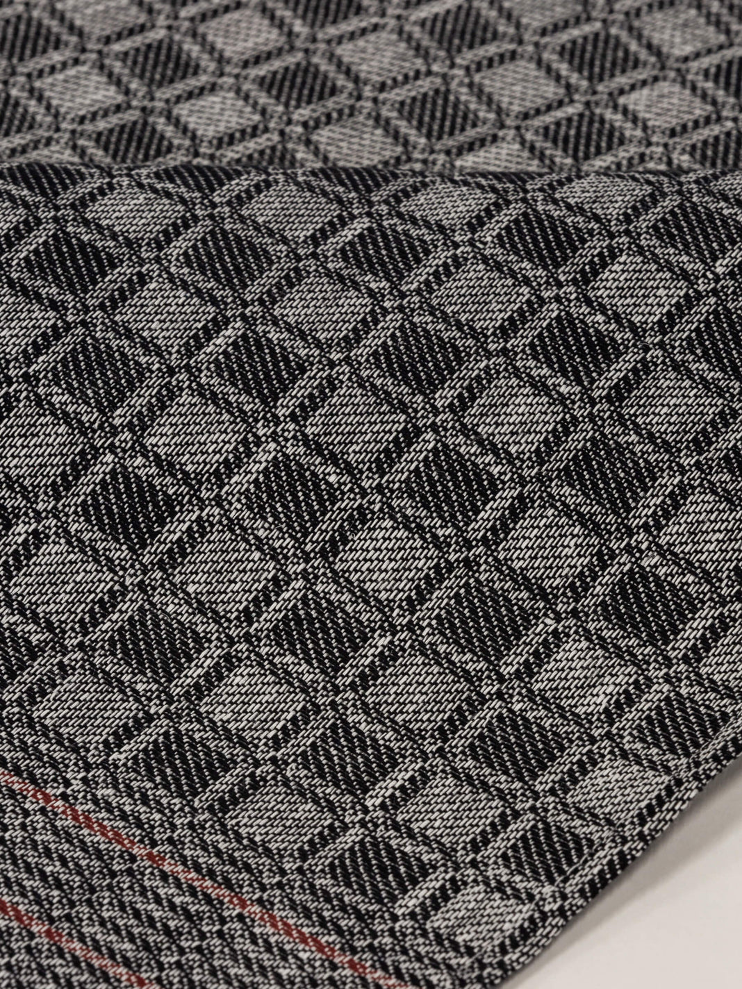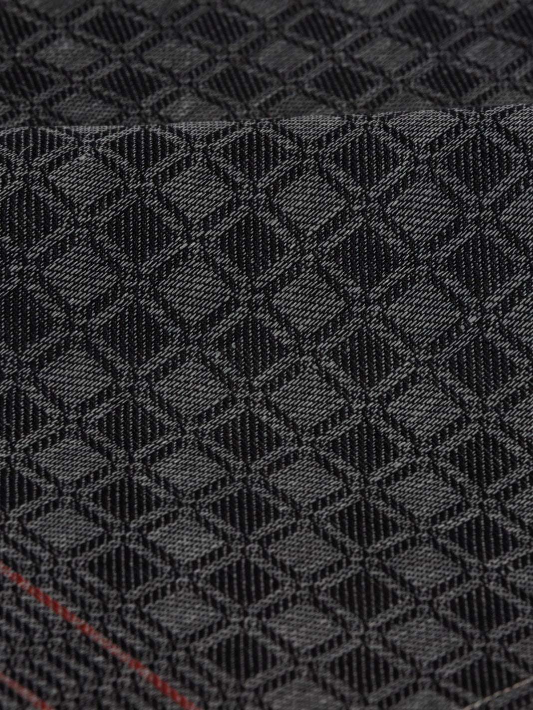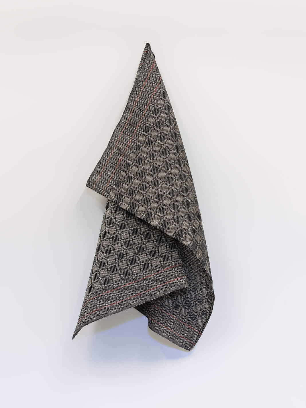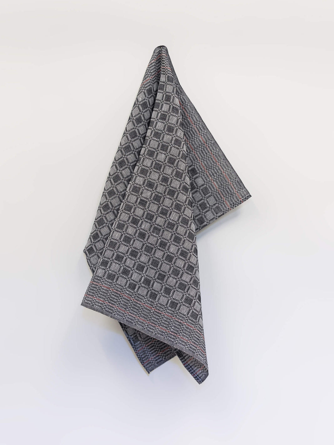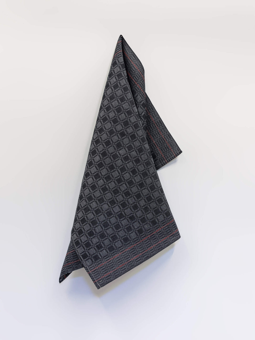 Disponible en trois coloris traditionnels – chacun avec une base noire combinée avec naturel, blanc ou gris – la célèbre bande rouge « Erinnerungsstreifen » reste également présente dans le cadre, fidèle au style. Le tissage caractéristique en Gerstenkornbindung assure une grande longévité et une capacité d’absorption particulièrement élevée.