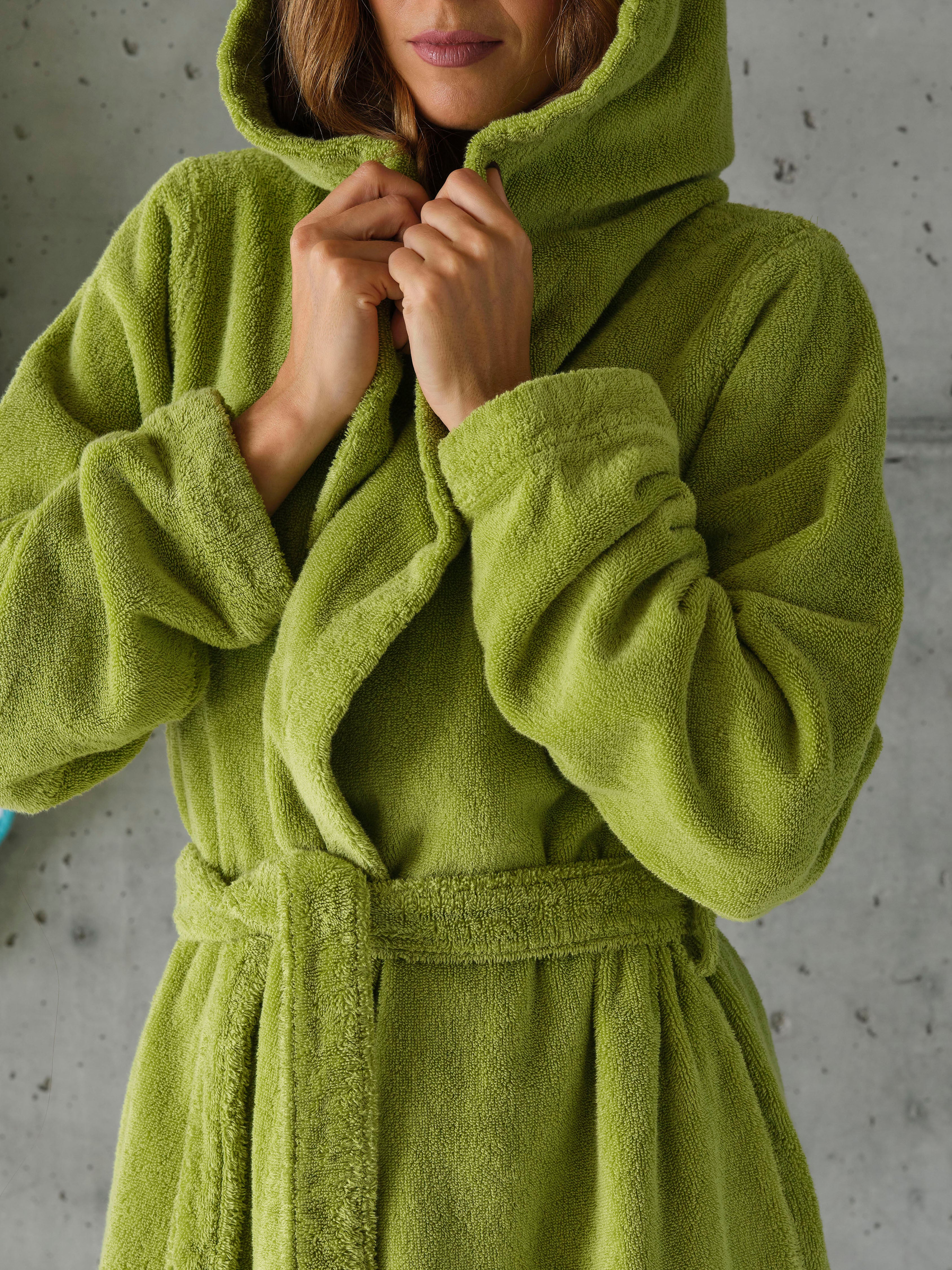 - Details: Kapuze, 2 seitliche Eingriffstaschen, breiter Gürtel, Armumschläge, Gürtelschlaufen, Aufhänger