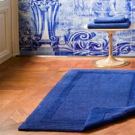 Der Badeteppich „Reversible“ von Abyss & Habidecor wird in Portugal aus hochfloriger, langstapeliger ägyptischer Giza-Baumwolle handgefertigt. Sein hohes Gewicht (2.200 g/m²) sorgt für satten Halt ohne Gummierung, hervorragende Saugfähigkeit und langlebige Formstabilität – ideal für den täglichen Einsatz im Bad.