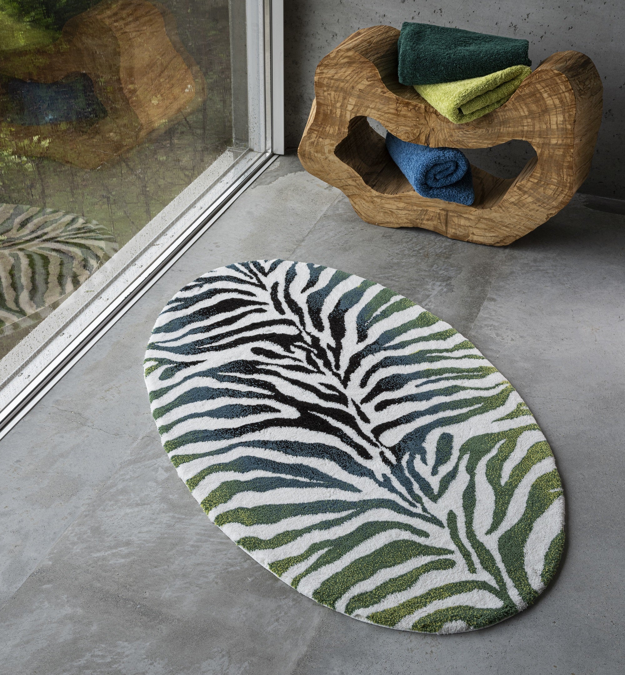 Der Badeteppich „Karoo“ von Abyss & Habidecor ist ein wahres Statement-Piece für Ihr Badezimmer. Inspiriert von der Eleganz der Natur besticht er durch sein extravagantes Zebra-Design in edlem Weiß-Grün. Mit seiner hochflorigen, garngefärbten Struktur und einem luxuriösen Gewicht von 1.900 g/m² verleiht er jedem Raum sofort eine stilvolle, exklusive Atmosphäre.