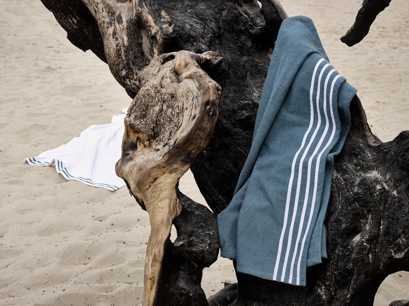 Das Strandtuch "Corvus" ist ein voluminöses, flauschiges Strandtuch aus ägyptischer Baumwolle. Das schwere 600g/m2 Frottier ist sagstark und weich. Auf elegantem Petrol wird am unteren Rand ein reinweißes Satinband in 4 Reihen aufgesetzt, was dem Tuch einen fein maritimen Look gibt. Auf Anfrage ist das Tuch auch in weiteren Farbstellungen sowie in den regulären Hand & Badetuch größen erhältlich.