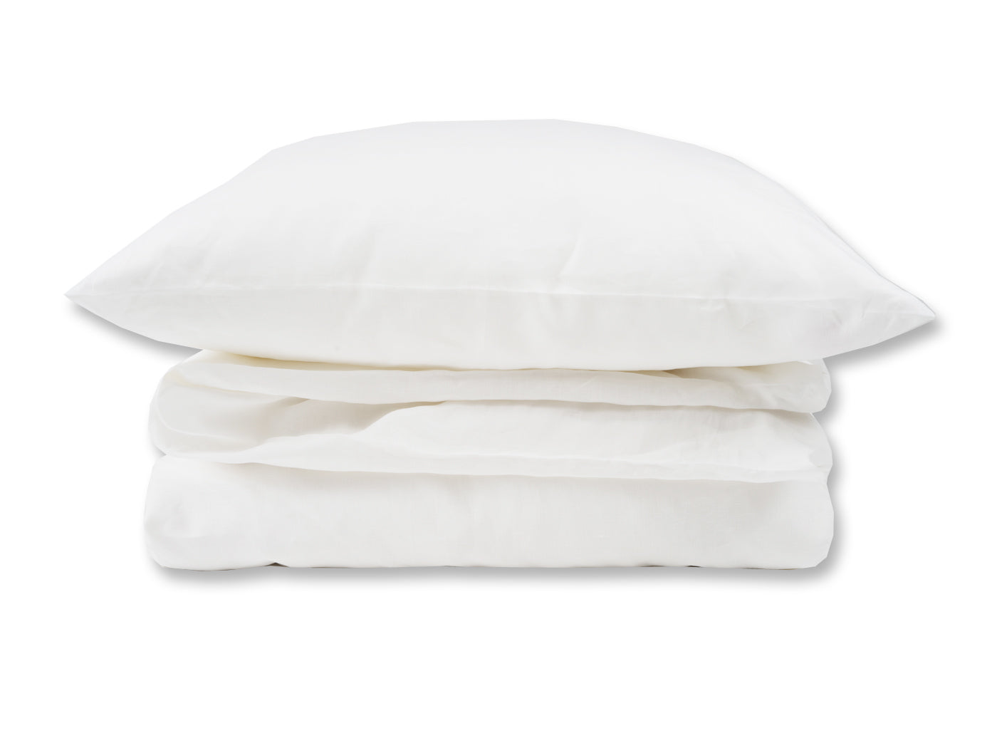 Bettwäsche aus vorgewaschenem Leinen in Reinweiß.