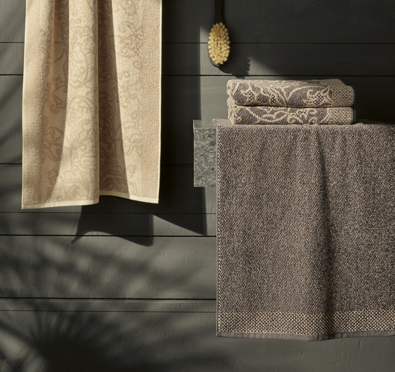 Dieses luxuriöse Frottier ist eine elegante Adaption des beliebten Jacquard-Dessins Uni aus der Tischwäsche-Kollektion und jetzt auch als Handtuch, Duschtuch, Bademantel und mehr erhältlich. Gefertigt aus einer edlen Materialmischung von 80 % extralangstapeliger ägyptischer Baumwolle und 20 % französischem & belgischem Leinen, verbindet es Stil, Funktionalität und höchste Qualität – hergestellt in Österreich.