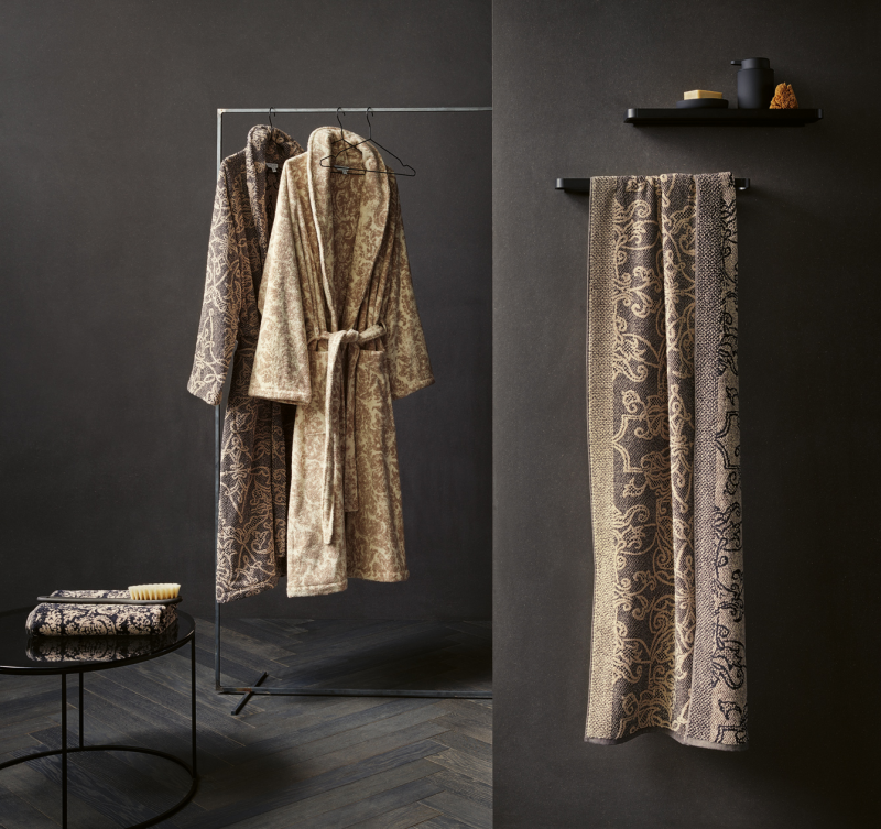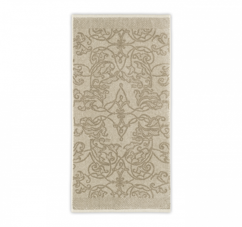 Dieses luxuriöse Frottier ist eine elegante Adaption des beliebten Jacquard-Dessins Mariage aus der Tischwäsche-Kollektion und jetzt auch als Handtuch, Duschtuch, Bademantel und Duschvorleger erhältlich. Gefertigt aus einer edlen Materialmischung von 80 % extralangstapeliger ägyptischer Baumwolle und 20 % französischem & belgischem Leinen, verbindet es Stil, Funktionalität und höchste Qualität – hergestellt in Österreich.