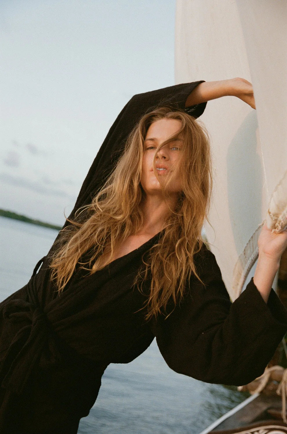 Mit diesem vielseitigen Bademantel können Sie mühelos vom Strand zur Soiree wechseln.