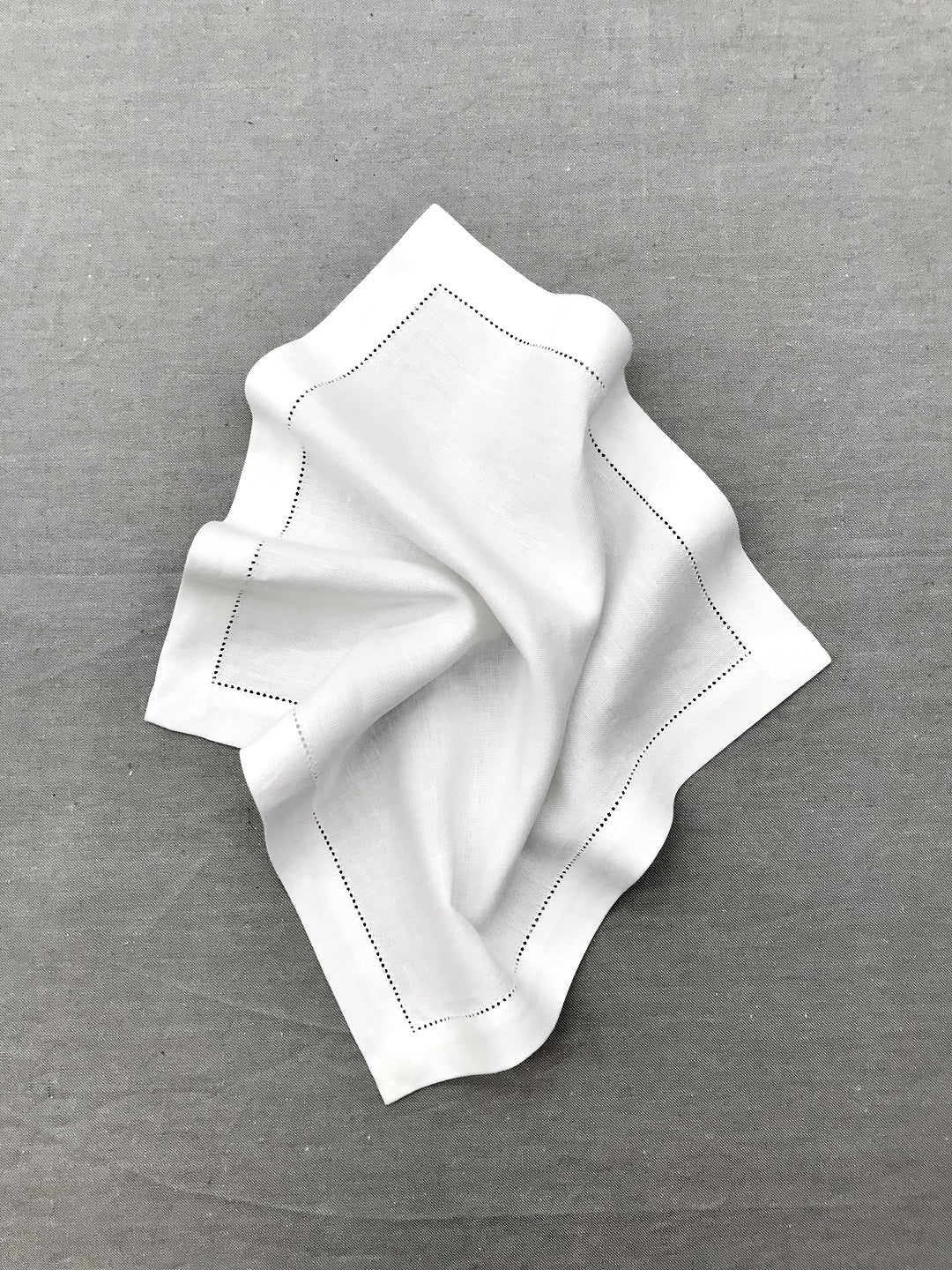 Diese Servietten werden aus unserem mittelschweren Reinleinen "342" gefertigt. Das naturbelassene bzw. das weiße Leinen wiegt 263g/m². Der neutrale Sandton und das strahlende Weiß ist für jedes Esszimmer und für jeden Tisch passend. Die Ränder der Servietten werden mit einem 3cm Lochsaum bzw. Ajoursaum genäht.