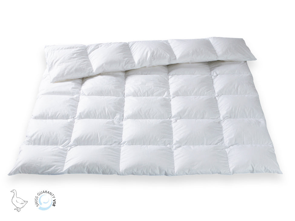Neu: Diese Decke ist wahlweise mit einem Baumwollbezug (SWISS COTTON / SWISS BATIST) oder mit einem Seidenbezug erhältlich.