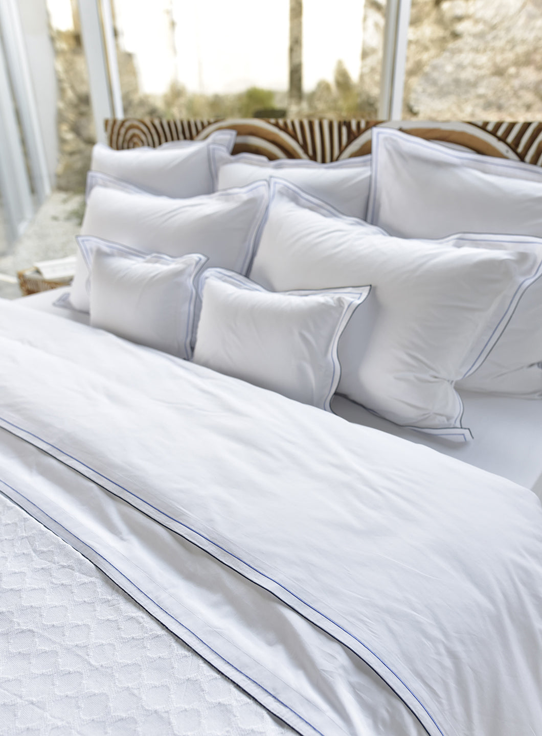 Die „Areo“ Bettwäsche von Celso de Lemos ist ein Meisterwerk portugiesischer Handwerkskunst. Das luxuriöse Oberlaken aus reinweißem Giza Baumwoll-Perkal erhält durch eine fein gearbeitete Stickerei in zwei harmonisch abgestimmten Farbnuancen ein erfrischend elegantes Finish.
