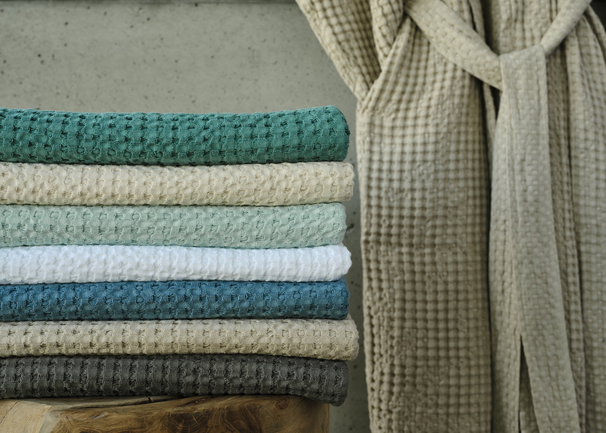Die schönen, großen Waben von Abyss „Pousada“ prägen den lässigen Look dieser Waffel-Pikee-Serie. Gefertigt aus 100 % bester, extra langstapeliger ägyptischer Giza 70 Baumwolle, gekämmt und gezwirnt, bietet „Pousada“ eine edle Haptik, leichtes Gewicht und schnelle Trocknung.