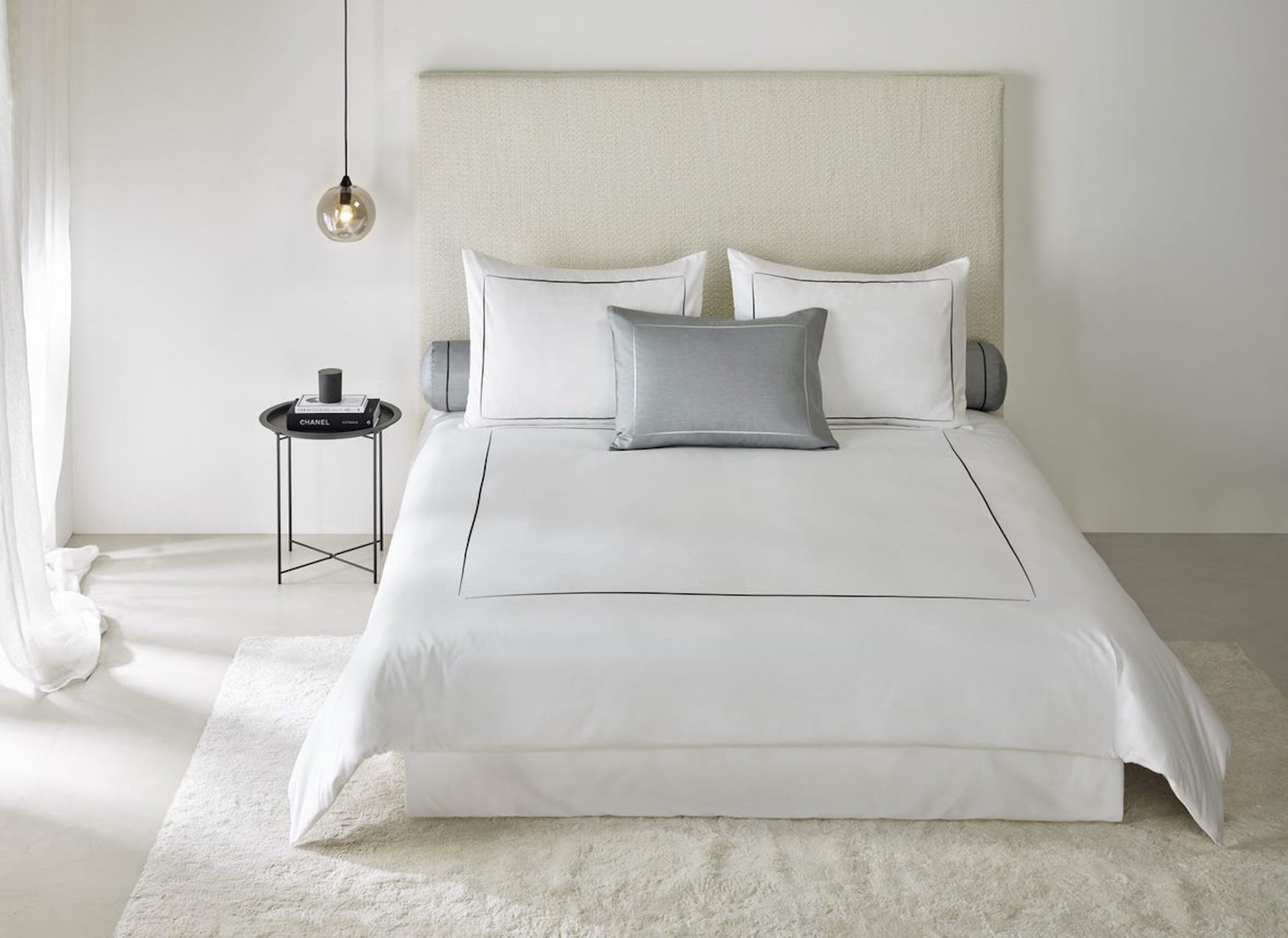 Raffinierte Satinbettwäsche fein bestickt in Weiß und Grau